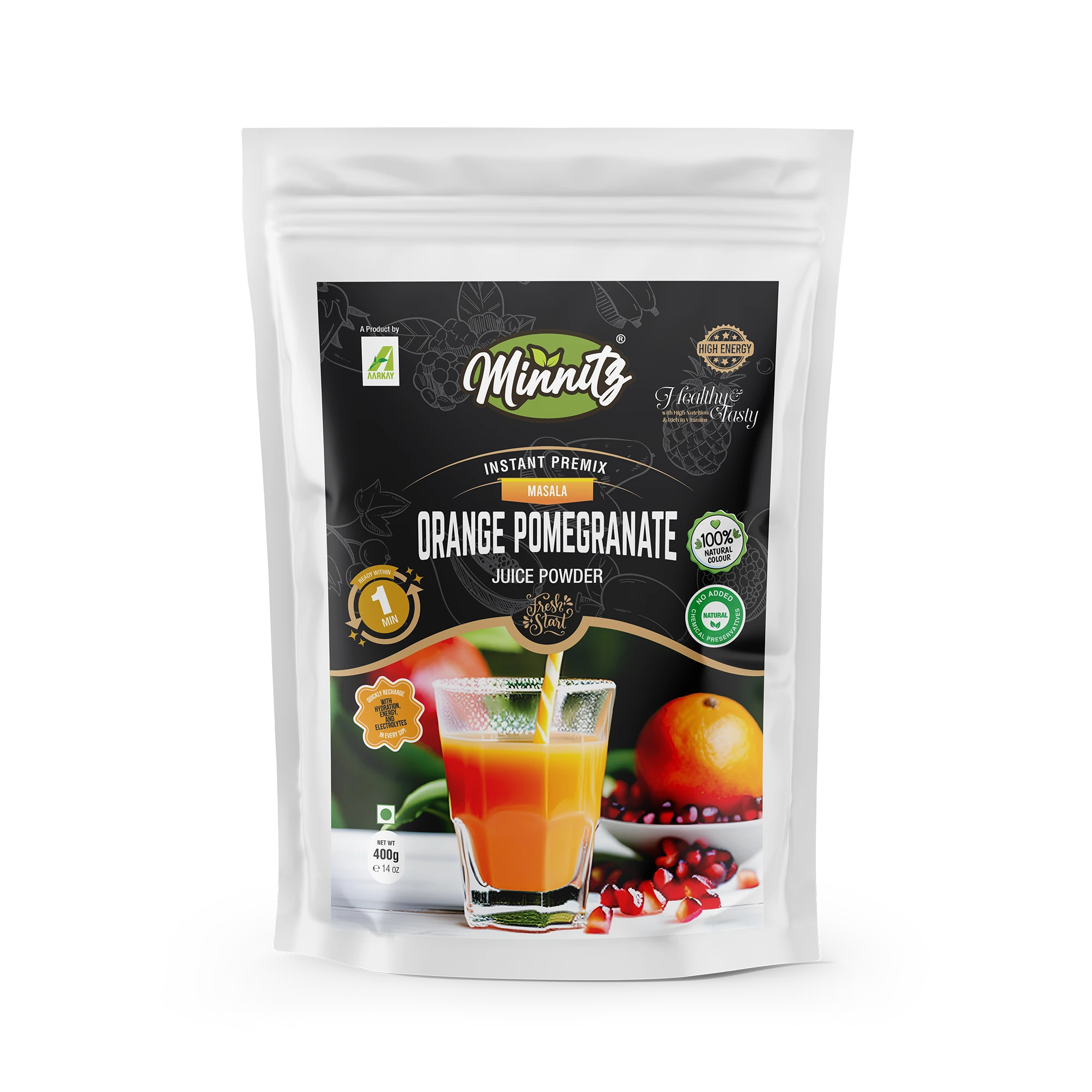 Minnitz Natural Instant Orange Pomegranate Juice Premix Powder – Ready in 1 Minute!
