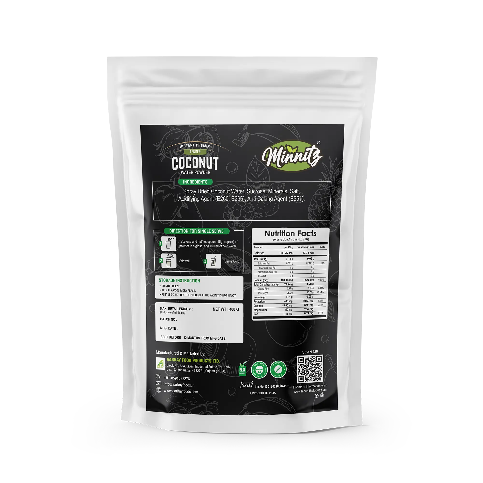 Minnitz Natural Instant Tender Coconut Water (Nariyal Paani) Premix Powder